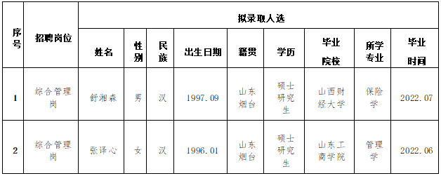 按照集團(tuán)7月11日發(fā)布的招聘公告,經(jīng)簡歷投遞、資格審查、筆試、面試、集體決策等環(huán)節(jié),擬確定部分校招崗位錄取人選,現(xiàn)予以公示,公示期為5個(gè)工作日(8月1日至8月5日)。本次公開招聘崗位中綜合管理崗已招滿,此崗位招聘終止。